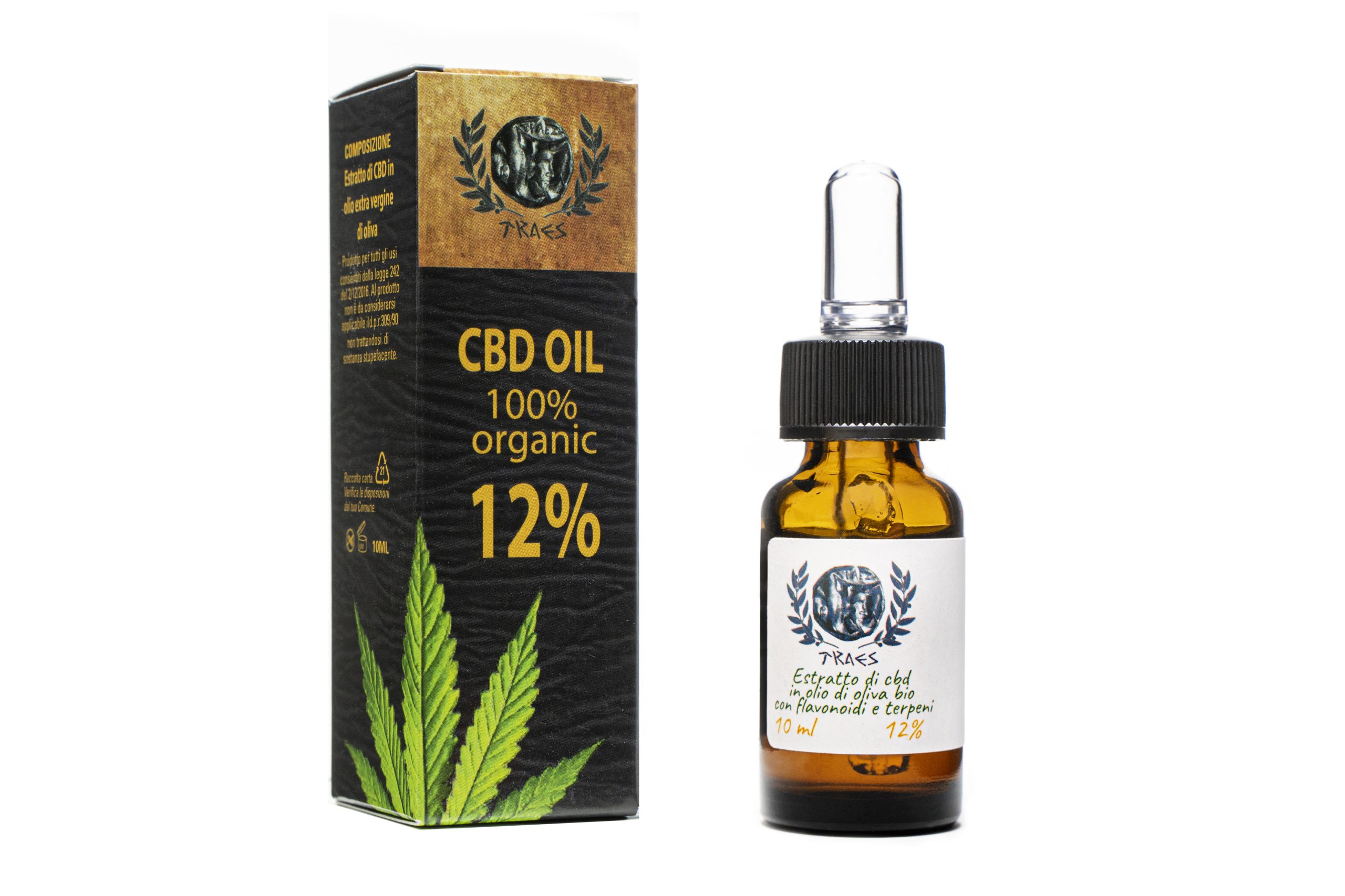 Traes® CBD OIL è un olio di cbd 100% naturale e completamente organico, realizzato esclusivamente con olio di oliva biologico calabrese. Contiene il 12% ci CBD (cannabinolo) ed è ottenuto dalle migliori infiorescenze di Canapa Sativa L. coltivate nei nostri campi, tra gli uliveti e gli aranceti della fertile valle del fiume Tronto.